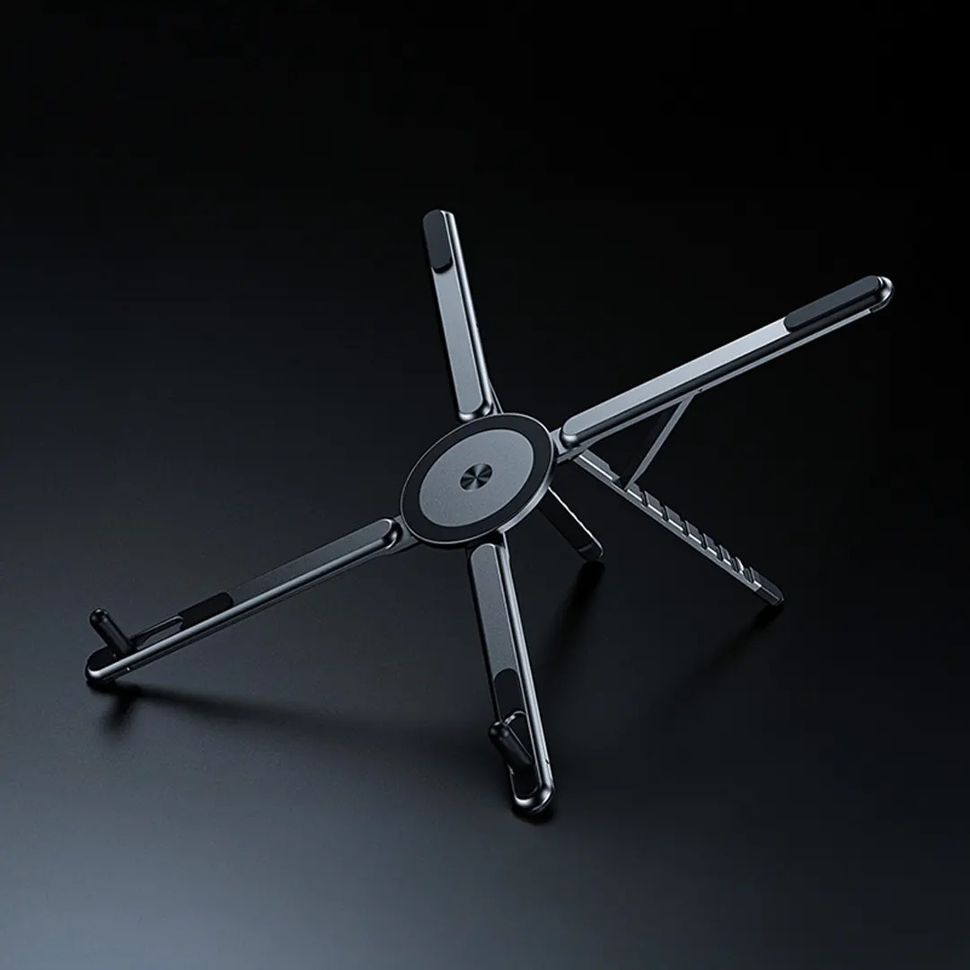 1. 5-in-1 Versatility: The E05 Travel Stand combines laptop stand, phone stand, tablet support, magnetic cup holder, and desk organizer into a single, compact device — perfect for work, travel, or home use.